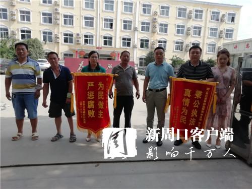 8月7日上午,淮陽縣朱集鄉(xiāng)馬樓行政村的6名村民將兩面寫有“為民做主、嚴(yán)懲腐敗”和“秉公執(zhí)法、真情為民”的錦旗分別送到該縣紀(jì)委審理室和第四監(jiān)察室負(fù)責(zé)人手中,以表達(dá)他們的感激之情。