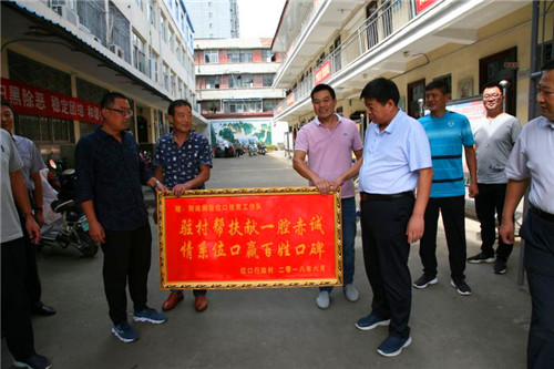 丁喜三代表財政局黨組對位口村民為財政局駐村工作隊(duì)贈送錦旗和牌匾表示感謝。稱縣財政局在縣委縣政府正確領(lǐng)導(dǎo)下,對張店鎮(zhèn)位口行政村進(jìn)行駐村幫扶,三年來的駐村工作取得了很大的成績,也存在很多不足,希望位口村廣大群眾對財政局的駐村扶貧工作多提寶貴意見,同時對新駐村隊(duì)員提出高的要求,財政局和位口村干部群眾攜手共同把脫貧攻堅(jiān)工作做好,確保不拖全縣的后腿,在奔小康的路上不落下一人。