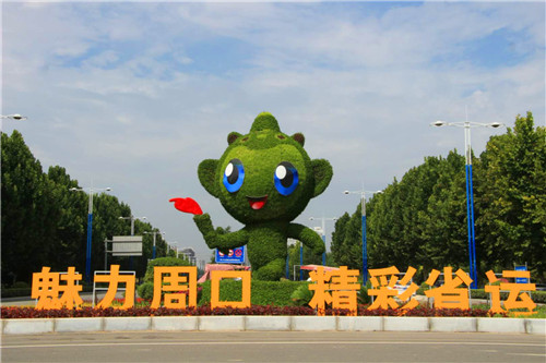 當(dāng)日上午,記者在東新區(qū)周口大道與文昌大道交叉口看到,巨大的運(yùn)動(dòng)會(huì)吉祥物造型“泥娃”正在招手,向每一位路人致意?!镑攘χ芸冢适∵\(yùn)”的口號(hào)立于泥娃兩側(cè),引人注目。中心路口的轉(zhuǎn)盤(pán)花壇內(nèi)已煥然一新,五顏六色的花朵正以嬌艷的姿態(tài),歡迎四海賓朋共聚周口。