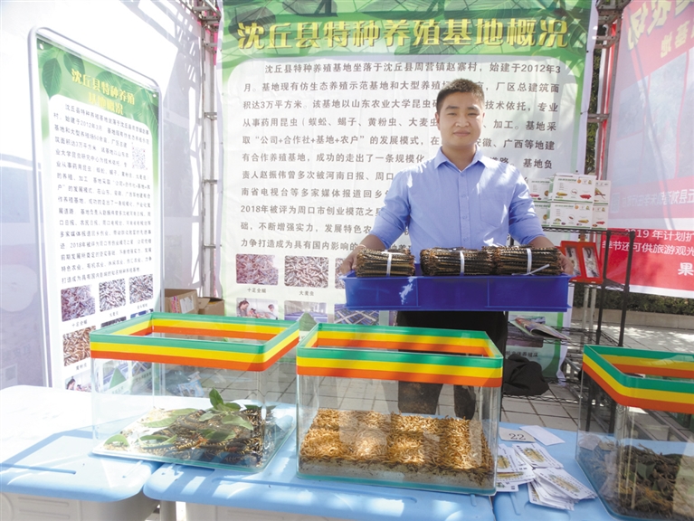 9月22日,沈丘縣舉辦第一個(gè)中國(guó)農(nóng)民豐收節(jié)慶?;顒?dòng),來(lái)自全縣22個(gè)鄉(xiāng)鎮(zhèn)(辦事處)的35家農(nóng)民種植、養(yǎng)殖合作社和家庭農(nóng)場(chǎng),展示了槐山藥、黃金梨、冬棗、木瓜、“袖珍”黃瓜、活體蜈蚣、蝎子等120余個(gè)品種。