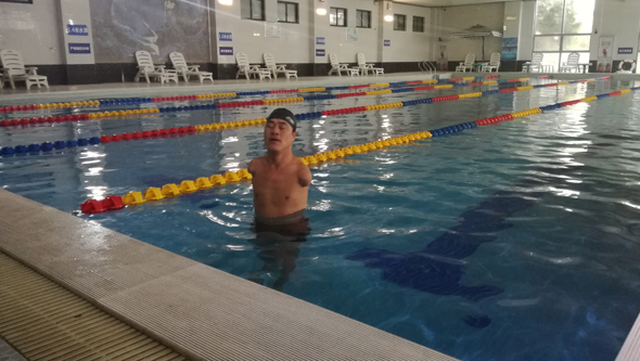 在交談中記者了解到,島建書在5歲時(shí)觸高壓線造成雙臂截肢?!?2歲那年,我在電視上看別人游泳,覺(jué)得別人能做到的我也能做到,從那時(shí)起我就決定學(xué)習(xí)游泳?!睄u建書說(shuō),當(dāng)時(shí)沒(méi)有條件,他就在河里自學(xué),期間還兩次溺水,所幸被人救起。