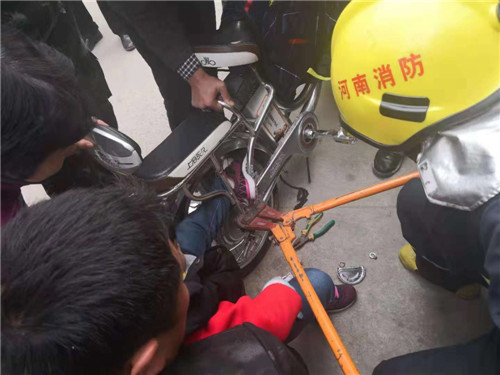 鄲城:女童腳卡電動車 消防成功施救