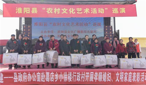 當(dāng)天,不僅表彰了11名孝順媳婦、11個文明家庭,贈送了價值3萬余元的辦公用品、慰問品和各類圖書1000余冊,還開展了義診活動。同時,由縣政府辦公室文藝志愿者、社會義工等共同為廣大群眾送上了一場文藝盛宴。