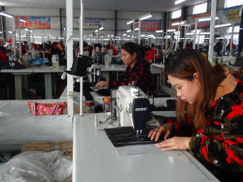 近年來(lái),沈丘縣針對(duì)不能外出就業(yè)但有勞動(dòng)能力和就業(yè)意愿的貧困群眾,采取“企業(yè)+扶貧車(chē)間+貧困戶”模式,引導(dǎo)縣域產(chǎn)業(yè)集聚區(qū)內(nèi)的服裝加工、電子組裝、戶外用品等勞動(dòng)密集型企業(yè)延伸產(chǎn)業(yè)鏈條,在貧困村規(guī)劃建設(shè)扶貧車(chē)間200余家,吸納貧困群眾就近就地就業(yè)。圖為12月3日,該縣付井鎮(zhèn)佳依服裝廠的工人正在忙著加工訂單服裝。②5 謝辛凌 攝
