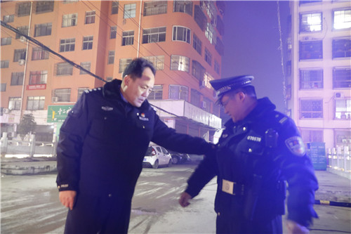 在城區(qū)各主要路段,何新敏一行遇到正在開展巡邏防控的控申大隊大隊長陳士祿等人,囑咐大家要注意防寒保暖,他要求執(zhí)勤民警要切實將巡邏防控工作落到實處,將車巡和步巡有機結合,提升街面見警率,進一步震懾違法犯罪,擠壓犯罪空間。要求在巡邏防控中要主動幫助需要幫助的群眾,提升群眾安全感和滿意度,展示好公安民警良好形象。