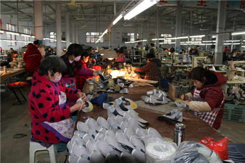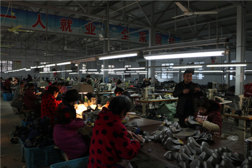 超琪鞋業(yè)是楊湖口鎮(zhèn)另一家以鞋面訂單加工為主、與上海東嘉鞋業(yè)合作的外貿(mào)出口企業(yè),年?duì)I業(yè)額達(dá)上千萬(wàn)。在該公司“扶貧車(chē)間”里,有30多名像秦梅英一樣分別來(lái)自楊湖口鎮(zhèn)周邊的貧困和非貧困村的貧困戶,對(duì)200多名留守婦女和貧困群眾進(jìn)行精準(zhǔn)幫扶,是有名的“巧媳婦工程”示范加工點(diǎn)。該鎮(zhèn)鎮(zhèn)長(zhǎng)劉新建說(shuō),超琪鞋業(yè)是全鎮(zhèn)產(chǎn)業(yè)精準(zhǔn)扶貧、帶貧行動(dòng)的一個(gè)縮影。楊湖口全鎮(zhèn)目前已發(fā)展有工業(yè)企業(yè)24家,養(yǎng)殖戶364戶,規(guī)模以上養(yǎng)殖企業(yè)17家,專業(yè)合作社116家。這些產(chǎn)業(yè)均以建檔立卡貧困村和貧困戶為幫扶對(duì)象,對(duì)貧困戶開(kāi)展免費(fèi)技能培訓(xùn),幫扶舉措有效解決貧困戶脫貧路上各種問(wèn)題,為貧困戶就業(yè)增收提供支持,讓這些陷入貧困卻不能改變生活面貌的農(nóng)村婦女有活干、有固定收入,能幸福生活。