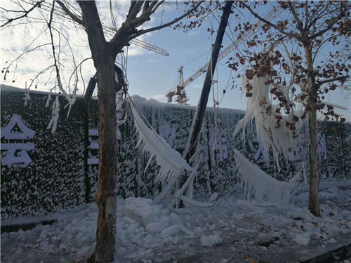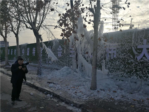 周口這兩天有多冷?周口一處工地圍擋噴淋用“噴水成冰”來告訴你天多冷。