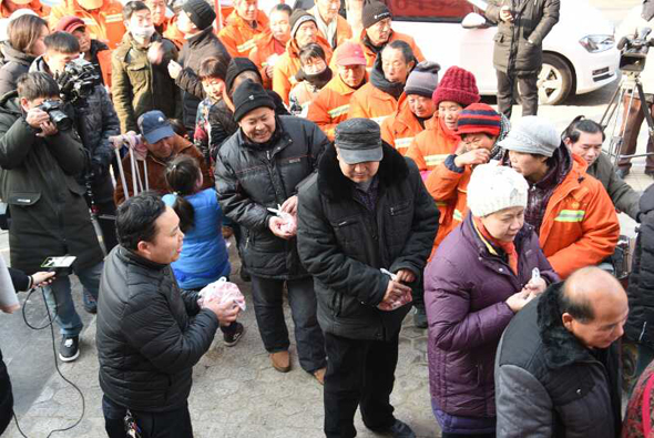在“羊肉哥”的愛心影響下,部分愛心企業(yè)紛紛加入到關(guān)愛環(huán)衛(wèi)工、殘疾人活動(dòng)中?;顒?dòng)現(xiàn)場,尉氏縣某蔬菜專業(yè)種植合作社總經(jīng)理給大家捐助了救心菜露酒。鄭州某食品有限公司給大家捐助了水餃和湯圓?;顒?dòng)現(xiàn)場,“餃子哥”王孝力、“投幣哥”鄭景軍、“粽子哥”劉明廣、“霹靂哥”武德正,鄭州市第三屆道德模范、鄭州愛心導(dǎo)盲犬關(guān)愛中心關(guān)驪,鄭州市第四屆道德模范張升華、周口人鄭能量公益聯(lián)盟秘書長楊正華、金水區(qū)紅十字黨員助殘志愿者服務(wù)隊(duì)、河南省紅十字結(jié)伴同行脫貧路志愿服務(wù)總隊(duì)、河南省紅十字結(jié)伴同行脫貧路志愿服務(wù)總隊(duì)等公益人士和團(tuán)隊(duì)紛紛為愛心活動(dòng)助力。