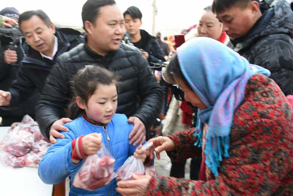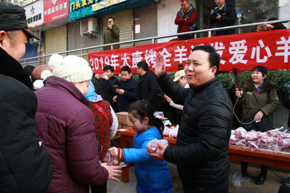 小小燒烤店門前,成了倡導(dǎo)“愛與奉獻(xiàn)主會場”。 2019年1月1日上午10點(diǎn),新年第一天,鄭州市國基路與豐慶路交叉口太康烤全羊店門口,60多名環(huán)衛(wèi)工、殘疾人、困難群眾等弱勢群體聚集在這里,排隊(duì)免費(fèi)領(lǐng)取“羊肉哥”孫合理和妻子劉曉愛派送的一份新年禮物——愛心羊肉,而這愛舉從2010年元旦開始到如今,已經(jīng)堅(jiān)持了9年。