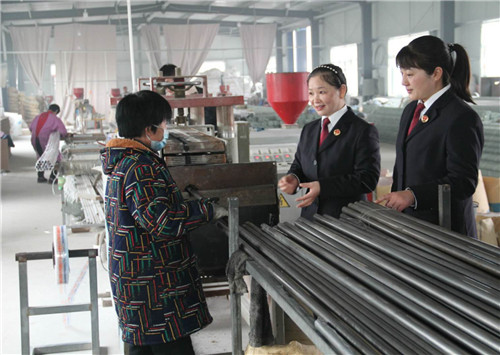 1月8日,扶溝縣檢察院幫扶干警來到固城鄉(xiāng)大王村扶貧車間,向正在加工窗簾杠的村民征求對(duì)扶貧工作的意見和建議。