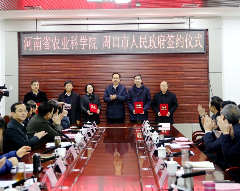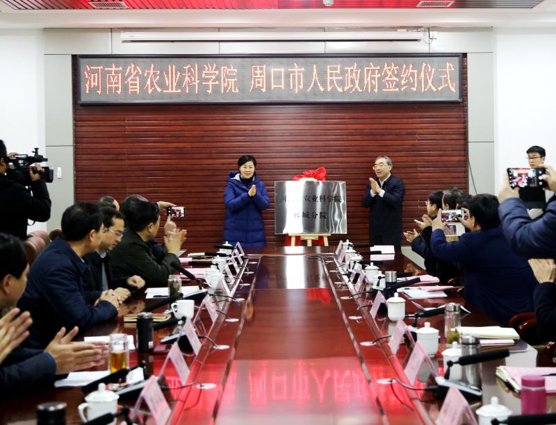 1月9日,河南省農(nóng)業(yè)科學院與周口市人民政府簽訂全面戰(zhàn)略合作協(xié)議暨河南省農(nóng)業(yè)科學院鄲城分院揭牌儀式在鄲城舉行,中國工程院院士、省農(nóng)科院院長張新友,省農(nóng)科院副院長衛(wèi)文星,副市長張廣東,以及鄲城縣委書記羅文閣、縣長李全林等相關(guān)負責同志參加儀式。