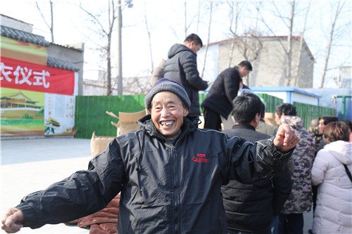 此次捐贈(zèng),共捐獻(xiàn)400多套棉襖。穿上嶄新的棉衣,87歲的李如意笑得合不攏嘴,他穿上新棉襖在廣場(chǎng)前轉(zhuǎn)了好幾圈,高興得像個(gè)等待過年的孩子。