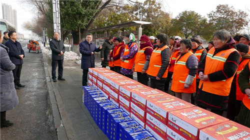 慰問中,皇甫立新、劉國慶一行首先來到新區(qū)“三公開”廣場,慰問堅守一線的環(huán)衛(wèi)工人,向他們致以新春的祝福,并對他們在過去一年里付出的辛勤勞動表示衷心感謝?;矢α⑿轮赋觯荒陙?,環(huán)衛(wèi)工人們起早貪黑、兢兢業(yè)業(yè),為改善居民生活環(huán)境和提升城市形象付出很多心血和汗水,取得了良好效果,城區(qū)環(huán)境和城市面貌有了很大改善,得到了社會各界的一致好評,希望環(huán)衛(wèi)工人們在春節(jié)期間繼續(xù)發(fā)揚奉獻精神,把縣城衛(wèi)生打造的更加干凈、整潔,讓廣大市民和回家過年的群眾能深刻感受到縣城環(huán)境的新變化,過一個干凈舒適愉快的春節(jié)。