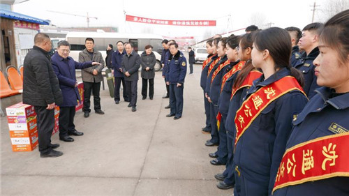 在縣公交公司,皇甫立新首先向全體干部職工致以節(jié)日的問候,對他們一年來為全縣人民安全順利出行做出的貢獻表示感謝。在認真聽取有關(guān)負責人關(guān)于節(jié)日期間增開班車和車次的匯報后,皇甫立新說,公交車作為公共交通運輸體系中的重要組成部分,不僅在完善城市交通運輸格局、方便市民出行方面發(fā)揮著重要作用,同時也是城市形象的象征。希望堅守崗位的公交職工要繼續(xù)提供優(yōu)質(zhì)服務(wù),文明安全駕駛,為居民在春節(jié)期間走親訪友和安全出行提供方便、搞好服務(wù),展示出沈丘公交公司員工的良好素質(zhì)和良好形象。并叮囑公交公司負責人要合理安排好職工的工作和生活,為廣大一線工作人員安心工作提供堅實的后勤保障,讓他們更加舒心愉快地服務(wù)廣大群眾。