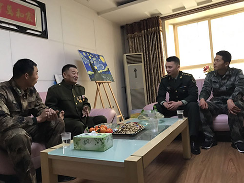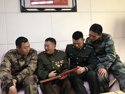 本報(bào)訊  追憶崢嶸歲月,鐵血軍魂永在。2月3日上午,春節(jié)的腳步越來(lái)越近,空氣中彌漫著節(jié)日喜慶的氣息。3名返鄉(xiāng)探親的“周口好兵”、一等功臣柳東坡、劉威、崔二偉相約慕名來(lái)到被中央軍委授予“英雄步談機(jī)員”榮譽(yù)稱號(hào)、一等功臣海水干家中,聆聽(tīng)老英雄講述當(dāng)年的戰(zhàn)斗事跡,上了一堂生動(dòng)的國(guó)防教育課。