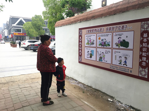 “文化墻既美化了環(huán)境,又能給我們老年人提供一些養(yǎng)生的建議,領導的想法好嘞很著呢!”家住馨麗康城63歲的趙姓居民在文化墻前由衷地發(fā)出了感慨,“大街上的宣傳標語,商店電子屏上的標語,街道上不停地清掃灑水,學校給學生發(fā)的宣傳手冊,現(xiàn)在,大人小孩都知道創(chuàng)建衛(wèi)生城市了,環(huán)保意識也增強了,我的小孫子吃完的果凍盒,不見垃圾桶就一直拿在手里舍不得扔了?!?/p>