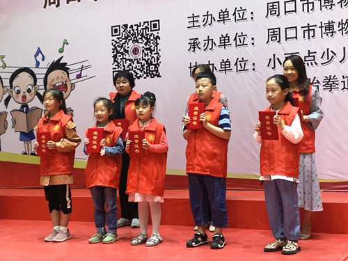5月18日國(guó)際博物館日當(dāng)天,周口市博物館舉行系列主題活動(dòng)“如果文物會(huì)說(shuō)話(huà),我為祖國(guó)倍驕傲”詩(shī)歌朗誦活動(dòng)、文物繪畫(huà)作品展活動(dòng)。在活動(dòng)現(xiàn)場(chǎng),小朋友們帶來(lái)了精彩紛呈的節(jié)目,有根據(jù)市博物館的文物創(chuàng)作的詩(shī)歌作品《文物會(huì)說(shuō)話(huà):漢代玉豬》《文物會(huì)說(shuō)話(huà):戰(zhàn)國(guó)青龍玉佩》,有集體朗誦《中華頌》《初生的太陽(yáng)》《我驕傲我是中國(guó)人》,還有獨(dú)唱、舞蹈、相聲、跆拳道、非洲鼓表演等,共同為本次活動(dòng)增光添彩。