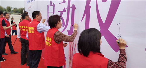 攜手共建衛(wèi)生城,齊心同育文明花。5月19日上午,周口市城鄉(xiāng)一體化示范區(qū)(以下簡稱示范區(qū))創(chuàng)建國家衛(wèi)生城市志愿者服務活動正式啟動。市創(chuàng)衛(wèi)辦副主任、市衛(wèi)健委主任金玉貞,共青團周口市委書記王春華,示范區(qū)黨工委書記閆立超、管委會主任張建黨等全體班子成員出席儀式。全區(qū)3600名青年志愿者參加活動。