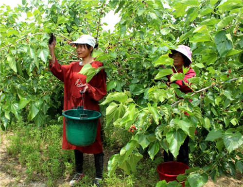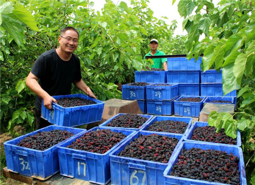 除此之外,桑果的采摘全靠人工,是勞動密集型產(chǎn)業(yè),需要大量當(dāng)?shù)氐膭趧恿?,每到采摘季?jié),公司都會招用周邊200余名村民到種植基地務(wù)工,僅此一項(xiàng),為每名務(wù)工人員人均增收3000余元?!鞍吃谝嫫飞i┓N植基地采摘桑椹,每天都有100多元的收入?!苯衲?3歲的黃橋鄉(xiāng)孫堤村留守婦女趙美容高興的說。