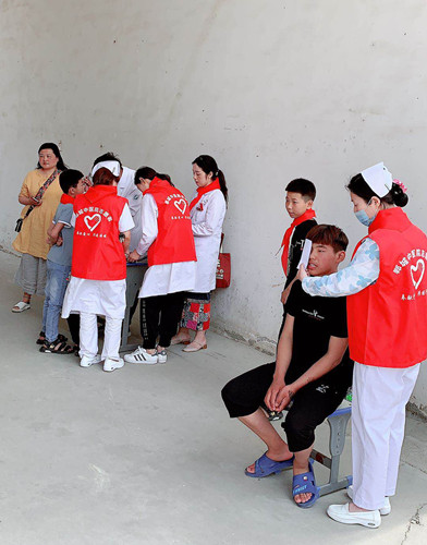 特別令人暖心的是,鄲城縣中醫(yī)院的醫(yī)務(wù)志愿者為孩子們做免費(fèi)體檢。