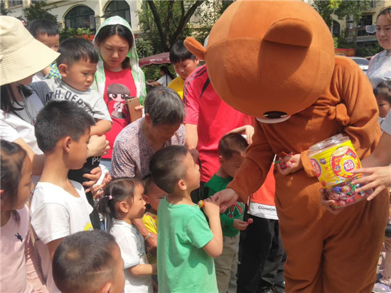 活動(dòng)中,工作人員精心穿著卡通人偶服裝與小朋友們熱情互動(dòng)、做游戲,天氣雖然炎熱,但孩子們卻忙的不亦樂(lè)乎,家長(zhǎng)們喜笑顏開(kāi),一派祥和、歡樂(lè)的氣氛。