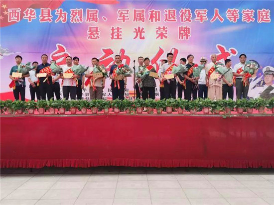 “八一”建軍節(jié)前夕,西華縣啟動了軍人軍烈屬懸掛光榮牌儀式、2019年義務(wù)兵家庭優(yōu)待金發(fā)放儀式。營造“一人當(dāng)兵、全家光榮”的良好氛圍,共同鞏固人民軍隊的“鋼鐵長城”。