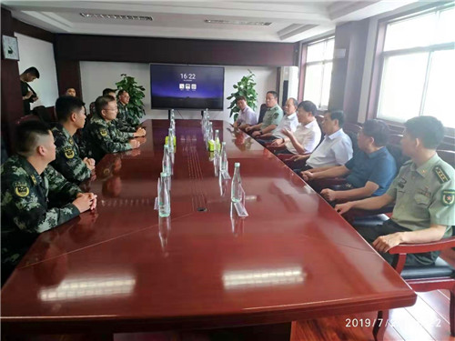 7月25日下午,在今年的“八一”建軍節(jié)即將到來前夕,鹿邑縣委書記梁建松,縣人大常委會(huì)主任李國際,縣政協(xié)主席雷申,縣委常委、辦公室主任侯自峰,縣委常委、縣人武部政委杜寶森,縣人武部部長陳巍帶著百萬鹿邑人民的美好祝福和深情問候,率鹿邑縣擁軍慰問團(tuán)先到赴周口軍分區(qū)、武警周口支隊(duì)、周口市消防支隊(duì)慰問座談,軍地雙方共敘魚水深情,共話合作發(fā)展大計(jì)。鹿邑縣退役軍人事務(wù)局、武警中隊(duì)、消防救援大隊(duì)負(fù)責(zé)人參加擁軍慰問。