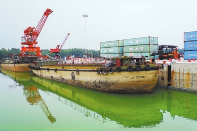 7月20日,周口中心港一派繁忙景象。該港口是我省規(guī)模最大、靠泊能力最強(qiáng)的內(nèi)河港口。隨著公、鐵、水、空“四位一體”立體綜合交通格局的逐步形成,周口中心港將成為豫貨出??凇⑦B接長三角經(jīng)濟(jì)圈的“橋頭堡”,也將成為中原地區(qū)深度融入“一帶一路”建設(shè)、通江達(dá)海的重要節(jié)點(diǎn)。河南日報記者 陳更生 王錚 攝