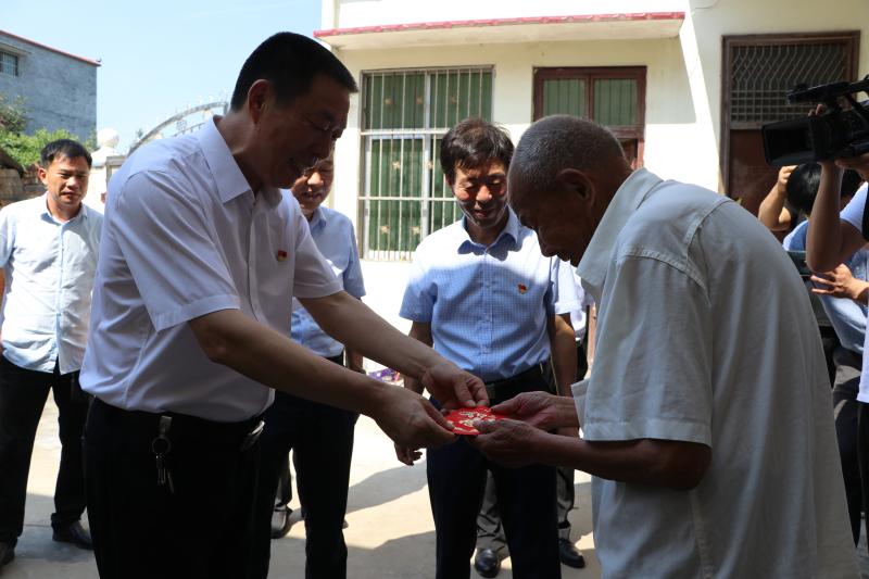 在蔣橋村王方正家,閆立超同他進行了親切地交談,詳細詢問他現(xiàn)在的生活情況??吹剿眢w健康,閆立超非常高興,祝福他健康長壽,并囑咐其家人一定要照顧好老人。據(jù)介紹,王方正是解放戰(zhàn)爭老復原軍人,參加過淮海戰(zhàn)役等戰(zhàn)斗,現(xiàn)年91歲。