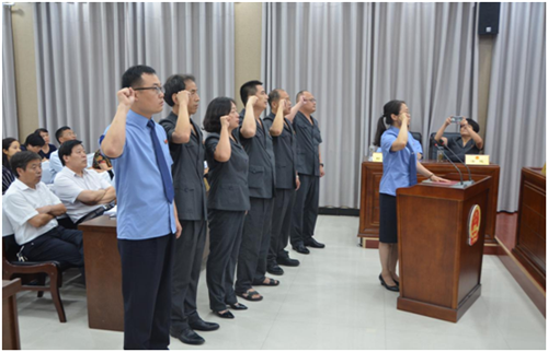 會(huì)議組織新任命的國(guó)家機(jī)關(guān)工作人員向憲法宣誓,李國(guó)際為新任命的國(guó)家機(jī)關(guān)工作人員頒發(fā)了任命書(shū)。