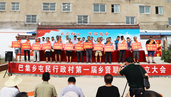 “段志軍每年都捐資捐物回報家鄉(xiāng),他去年捐30萬為巴集大街和屯民村安裝的200多盞路燈已經(jīng)亮了,捐85萬元新建的村室馬上竣工,將是全縣標準最高的,現(xiàn)在又捐60萬元;劉振發(fā)這幾年捐了40萬多,給村里修路、栽樹、幫扶貧困戶,今天又捐26萬;鄉(xiāng)賢會成立之前,大家已累計捐款240多萬元……”在今年8月6日屯民行政村鄉(xiāng)賢會成立儀式上,朱明理宣布捐款名單時多次被雷鳴般的掌聲打斷;“最難忘的就是村口的那棵大楊樹,最好吃的就是中午剩的涼面條、晚上嗑著大蒜吃?!痹谌T峽創(chuàng)業(yè)的劉振發(fā)的發(fā)言勾起了眾多游子的親情回憶;“啃個干饃,灶火里燒個辣椒一砸,撒點兒鹽就是最好吃的?!痹谏糖鹑温毜男炱渖浇舆^話茬說;“事業(yè)越大,工作越忙。但是,他們從四面八方歸來,這就是對家鄉(xiāng)的情誼,我們村肯定會越來越好。”鄉(xiāng)賢徐其民感慨地說;“從屯民走出的大學生不少,如今長成了企業(yè)家、行政干部等等,如參天大樹,卻不忘根、不忘本,這就是屯民的驕傲?!睆氖陆逃袠I(yè)35年的鄲城二高校長趙耀身為屯村一員感觸良多……