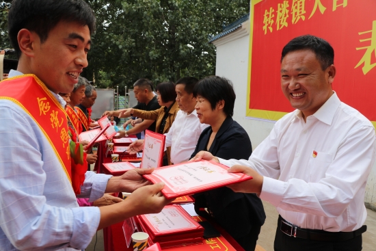面對(duì)群眾的熱情,鎮(zhèn)黨委政府后續(xù)工作也積極跟上,購買獎(jiǎng)品、證書,對(duì)各村評(píng)選出的“十星”農(nóng)戶進(jìn)行及時(shí)表彰和獎(jiǎng)勵(lì)?!爱?dāng)上‘十星’真光榮。舉辦這樣的活動(dòng)群眾喜歡,真是辦到了我們村民心坎里了。”說起村里在國慶節(jié)日期間舉辦‘十星’農(nóng)戶評(píng)選一事,轉(zhuǎn)樓鎮(zhèn)轉(zhuǎn)樓村村民張富國動(dòng)情地說。