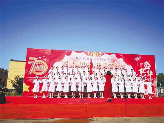 近日,在扶溝縣委宣傳部主辦的“群星耀中原·出彩新扶溝”群眾合唱展演活動中,來自全縣各界的12支合唱隊(duì)、700多名文藝愛好者用一首首催人奮進(jìn)的贊歌,為新中國成立70周年獻(xiàn)禮,唱出了愛黨、愛國、愛家鄉(xiāng)的熾熱情懷。