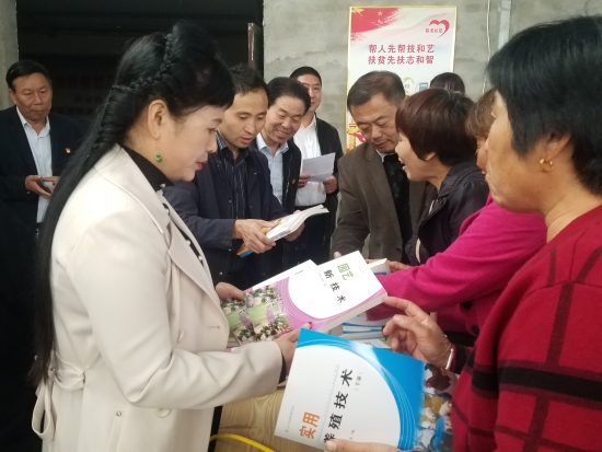 當天,淮陽縣職業(yè)中專正在借助河南省科技特派員科技專項扶貧平臺,組織豆門鄉(xiāng)紅山村百余名建檔立卡貧困戶學(xué)員進行為期15天的高效種植、健康養(yǎng)殖技術(shù)培訓(xùn)。在河南省科技特派員、周口職業(yè)技術(shù)學(xué)院趙慶楓博士的引薦下,民盟周口市委的楊彥濤委員、三支部主委王春華、文化教育支部主委任東升趕到現(xiàn)場為大家“傳經(jīng)送寶”。從種植增收致富到養(yǎng)殖奔小康,從關(guān)鍵技術(shù)到惠農(nóng)政策,從園林園藝技術(shù)到農(nóng)產(chǎn)品的銷售,專家們講得用心,學(xué)員們聽得認真。