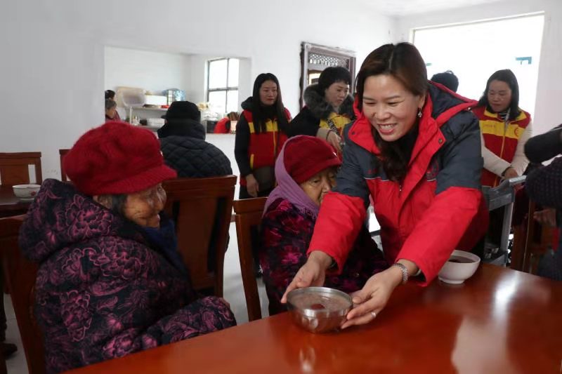 “開飯嘍!”中午時分,志愿者們將老人一一攙扶到餐廳坐下,隨后將一碗碗香氣四溢、且冒著熱氣的八寶粥端到老人跟前?!跋?,真香!”80歲的黃柏功老人舀了一勺八寶粥放到嘴里品了品笑著說。吃著八寶粥,老人想起了以前的艱苦生活,他禁不住激動地哭了起來:“以前,吃了上頓沒下頓,想吃一塊白面饃,都得等到過年。可現(xiàn)在,天天不斷肉,生活越來越好。這都是共產(chǎn)黨給咱的福啊?!?/p>
