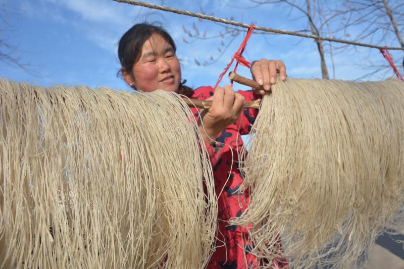 “我們是附近大朱莊村的,承包了30多畝地,主要種植西瓜紅薯等經(jīng)濟(jì)作物,效益不錯(cuò)。今天在程小這里加工純手工紅薯粉條,他還承諾幫助我們銷售,俺打心眼里高興啊……”正在晾曬粉條的朱勝民、王秀蓮夫婦一臉興奮。