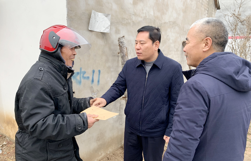 在牛莊和梁莊行政村,趙紅建在寧平鎮(zhèn)鎮(zhèn)長王樹勤的陪同下,看望慰問了困難群眾、困難老黨員,送去了慰問金,向他們致以新春的問候和美好的祝福。