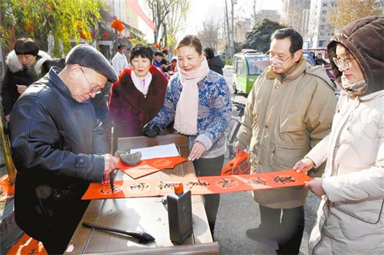 書(shū)法家義寫(xiě)春聯(lián) 把福送進(jìn)萬(wàn)家