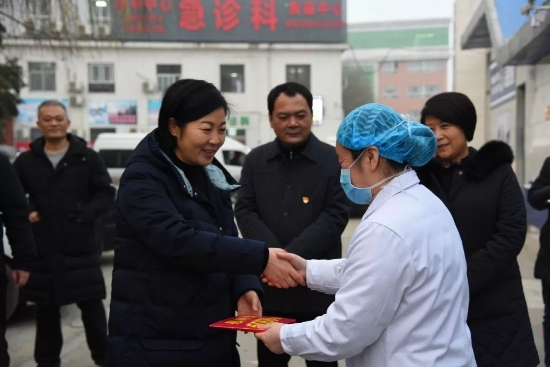 鄲城縣第一醫(yī)療健康服務(wù)集團(tuán)作為河南省新型肺炎救治定點(diǎn)醫(yī)院時(shí)刻牽動(dòng)著縣委縣政府領(lǐng)導(dǎo)的心。1月23日,縣委書(shū)記羅文閣、縣政府縣長(zhǎng)李全林、縣政府副縣長(zhǎng)肖煒來(lái)到縣醫(yī)院親切慰問(wèn)一線醫(yī)護(hù)人員,并給一線工作人員帶去春節(jié)祝福。
