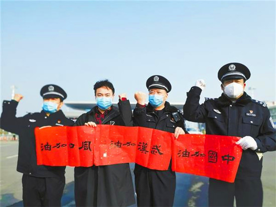 作為一名人民警察,我市新型冠狀病毒感染的肺炎疫情防控阻擊戰(zhàn)打響后,朱成剛幾乎沒有回過家,在鄭州大學(xué)書法學(xué)院上學(xué)的兒子朱震昊已經(jīng)一周沒有見到父親了。2月3日上午,他偷偷來到商南高速北站口,把精心書寫的“中國加油”“武漢加油”“周口加油”等書法作品送給父親及其戰(zhàn)友手中,為他們助力加油。記者 陳永團 攝