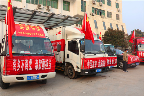 2月4日,隨著一輛輛裝滿物資的汽車緩緩駛?cè)胫芸?,周口市淮?yáng)區(qū)駐外流動(dòng)黨員黨支部的一場(chǎng)捐款捐物活動(dòng)如期進(jìn)行。