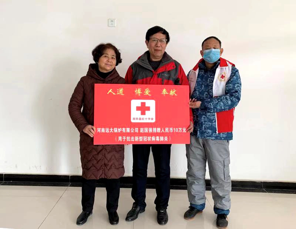 手術(shù)后在鄭州休養(yǎng)的河南遠(yuǎn)大鍋爐黨支部書(shū)記趙國(guó)強(qiáng),在看到廣大醫(yī)護(hù)人員、共產(chǎn)黨員紛紛申請(qǐng)到抗疫一線時(shí),他躺不下了,不顧身體病痛,于1月31日和家屬專程趕回西華,向西華縣紅十字會(huì)捐款10萬(wàn)元,用于抗擊新型冠狀病毒感染的肺炎疫情防控工作。