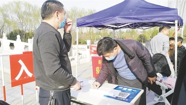 本報(bào)訊 3月10日,天氣晴朗,暖意融融,關(guān)閉一個(gè)多月的周口公園開園迎客第二天,記者在周口公園看到,游客都戴著口罩,經(jīng)登記、測溫后依次入園,園內(nèi)秩序井然。