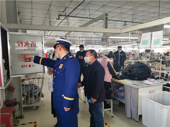 為全力推動(dòng)冬春火災(zāi)防控工作,切實(shí)保障復(fù)工復(fù)產(chǎn)企業(yè)的消防安全,該縣消防大隊(duì)深入轄區(qū)復(fù)工復(fù)產(chǎn)企業(yè)開展消防安全監(jiān)督檢查,督促復(fù)工復(fù)產(chǎn)企業(yè)做好消防安全工作,嚴(yán)防發(fā)生火災(zāi)事故,筑起疫情防控時(shí)期的消防安全屏障。