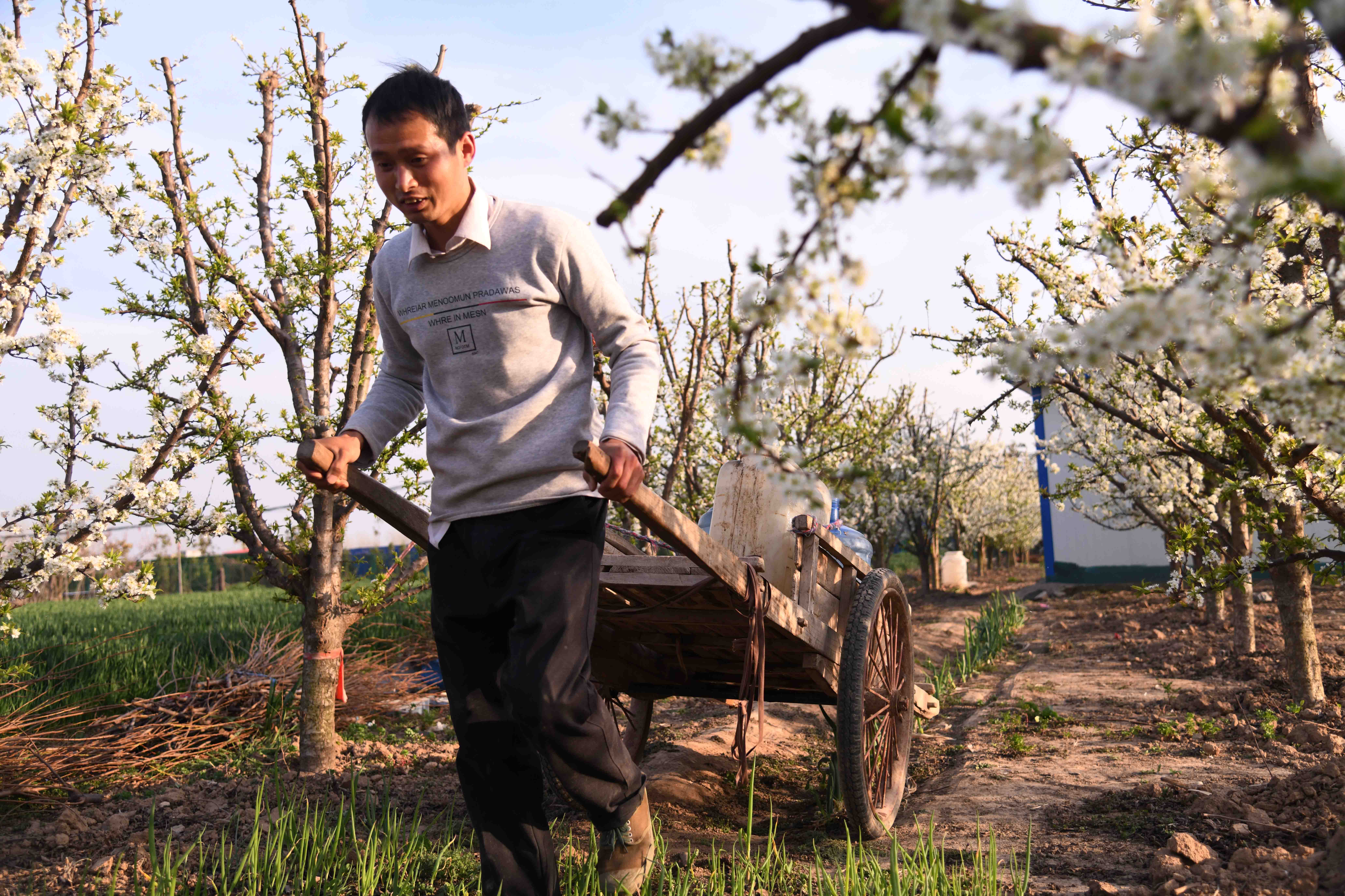 記者在一家果農(nóng)的果園里看到,果園在春陽(yáng)下,李子花滿園濃放,滿樹花朵潔白如玉,芳香四溢,宛如置身人間仙境。果農(nóng)正忙著為果樹澆水,侍弄新栽的果苗。何莊村果園有三四百畝,種植有桃樹、蘋果樹、梨樹、李子樹、柿樹等,是附近有名的果樹種植村,成為村里的重要副業(yè),每年夏秋季節(jié),這里瓜果飄香,吸引很多城里人和附近村民前來(lái)購(gòu)買。