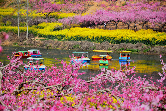 今年是黃橋迎來第十六屆桃花節(jié),鑒于疫情防控的需要,本屆桃花節(jié)不再聚眾舉辦,然而,燦爛如錦的黃橋,還是吸引著大批人們前來踏青賞花。3月24日,仲春的太陽火辣辣的,依然阻止不了人們前來觀賞桃花的好心情,游人如織,攜家?guī)Э冢襞笠?,漫游在桃花深處,桃花飛紅的潁河里,大人帶著孩子們踏著游船,暢游花海碧水之間,游船點點,讓人嘆為觀止。