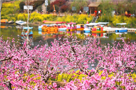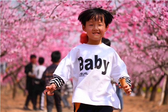 而在萬畝桃花深處,賞花的人們也是醉不知歸。大人孩子們神采飛揚,追逐賞花,探幽覓芳,玩得很嗨!還有一個時尚的人們,在桃花深處玩抖音、玩直播、拍視頻,與天下網(wǎng)友共賞花海之美。