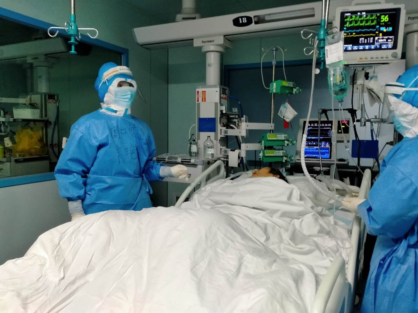 高艷艷說,除了多穿一層防護(hù)服,其他的跟平時的工作差不多。不同的地方,主要體現(xiàn)為兩點(diǎn),一就是從接班到交班,所做的所有工作都多了一份被感染的風(fēng)險。二就是救治存在的難點(diǎn)多、棘手的問題多、突發(fā)事件比較多,比如說:新冠肺炎患者發(fā)展到危重期,特別是病程較長的病人,肺大多爛掉了,多數(shù)病人上有呼吸機(jī),這樣的病人極易出現(xiàn)氣胸。有一次值班期間,一位56歲的男性患者,突發(fā)氧分壓下降、煩躁、血壓下降、出汗,急查胸片證實氣胸,緊急給予了胸腔穿刺閉式引流,病人癥狀才得以緩解。氣胸雖然在臨床上很常見,但對于新冠肺炎病人卻如同雪上加霜,不緊急處理病人很快就會死掉。每一個搶救的場面如同一場激烈的戰(zhàn)場,而戰(zhàn)斗隨時會打響,但你卻根本無法預(yù)測哪一次戰(zhàn)斗會在哪一個時刻打響,所以值班時每位醫(yī)師都會慣性地緊盯著每個數(shù)值、各個參數(shù)……