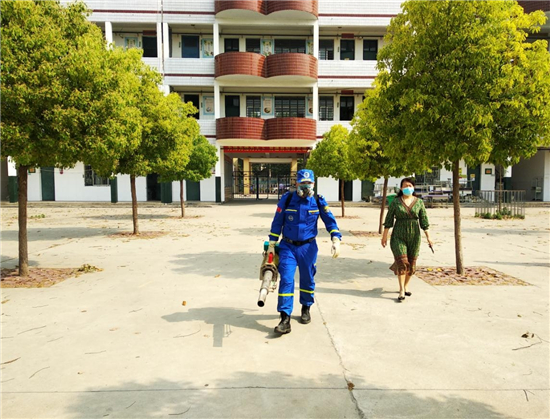 5月13日,我市中心城區(qū)低年級小學(xué)生將迎來返校復(fù)課。為保障孩子們身體健康,5月10日,周口市六一路小學(xué)再次邀請周口市藍(lán)天救援大隊工作人員對校園重點部位進(jìn)行全面消毒殺菌,為低年級師生順利返校復(fù)課提供健康保障。(記者 黃佳 通訊員 劉芝 攝)
