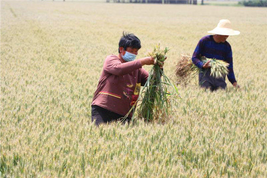 “今年共繁育良種小麥‘冠麥1號、中農(nóng)4007’兩個(gè)品種,這兩個(gè)品種的特點(diǎn)就是產(chǎn)量高、抗災(zāi)能力強(qiáng)?!睏椉r(nóng)場副場長趙云霄介紹,我們要做的工作就是徹底清除田間雜株、雜草、雜穗、大麥、燕麥,以保證小麥良種純度。小麥去雜提質(zhì)對種子安全、糧食質(zhì)量保障是非常重要的一環(huán),目前只能依靠人工去雜,經(jīng)過兩次去雜提純后,第一代良種即將迎來豐收,預(yù)計(jì)今年畝產(chǎn)將達(dá)到1200斤。